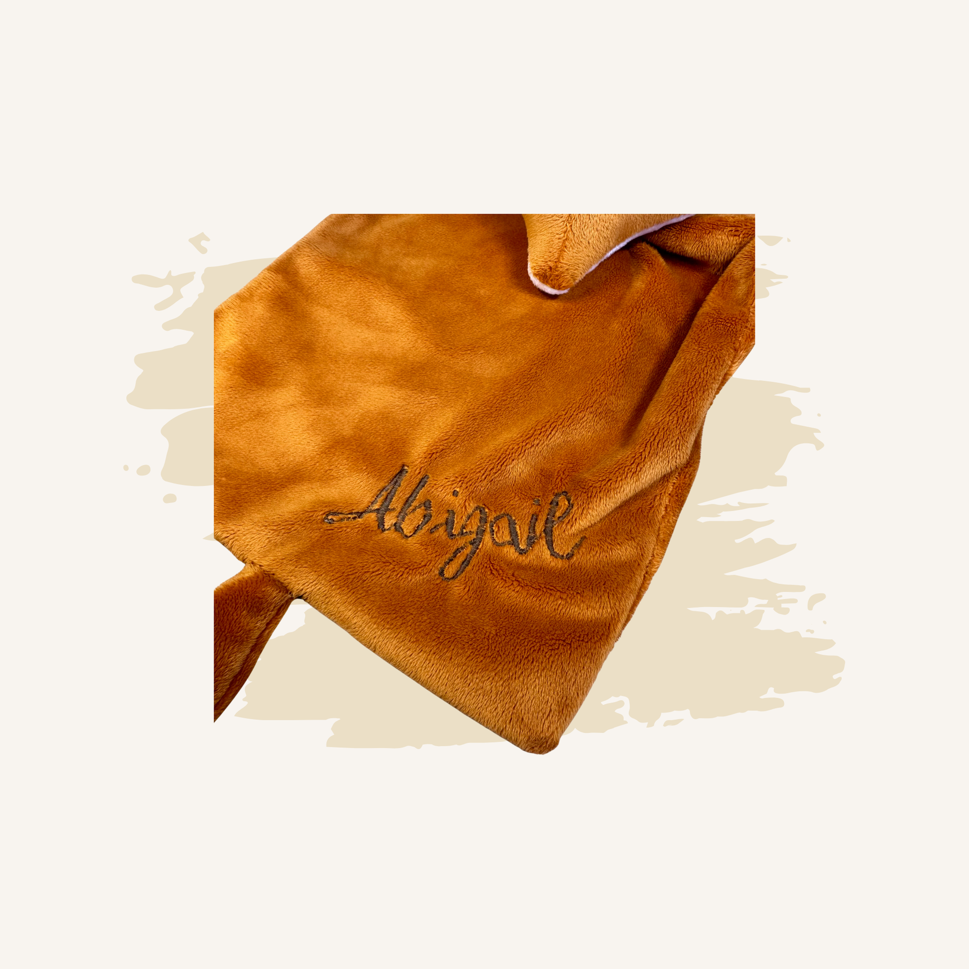 La broderie du prénom est réalisée avant l’assemblage, ce qui permet une finition douce et durable.